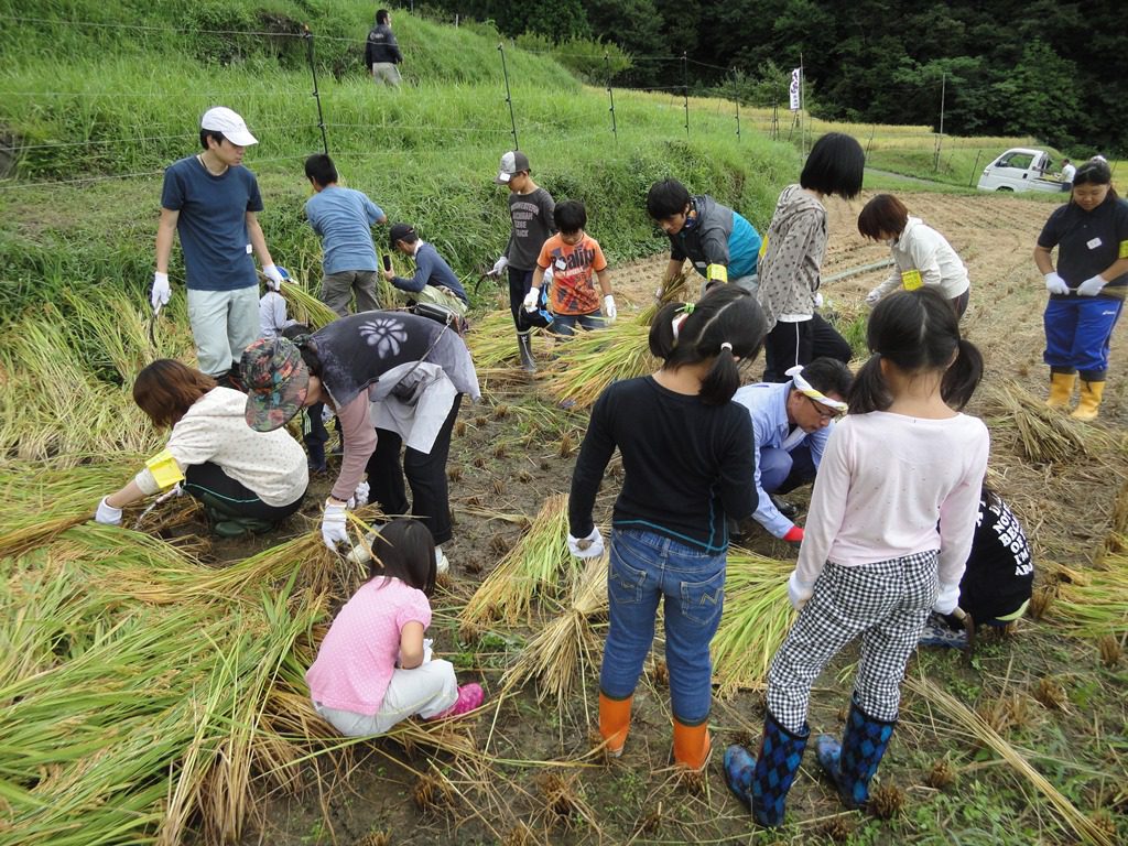 (例1農山村地域編)日本の棚田百選に数えられる大江町毛原の棚田taikanツアーで稲刈体験