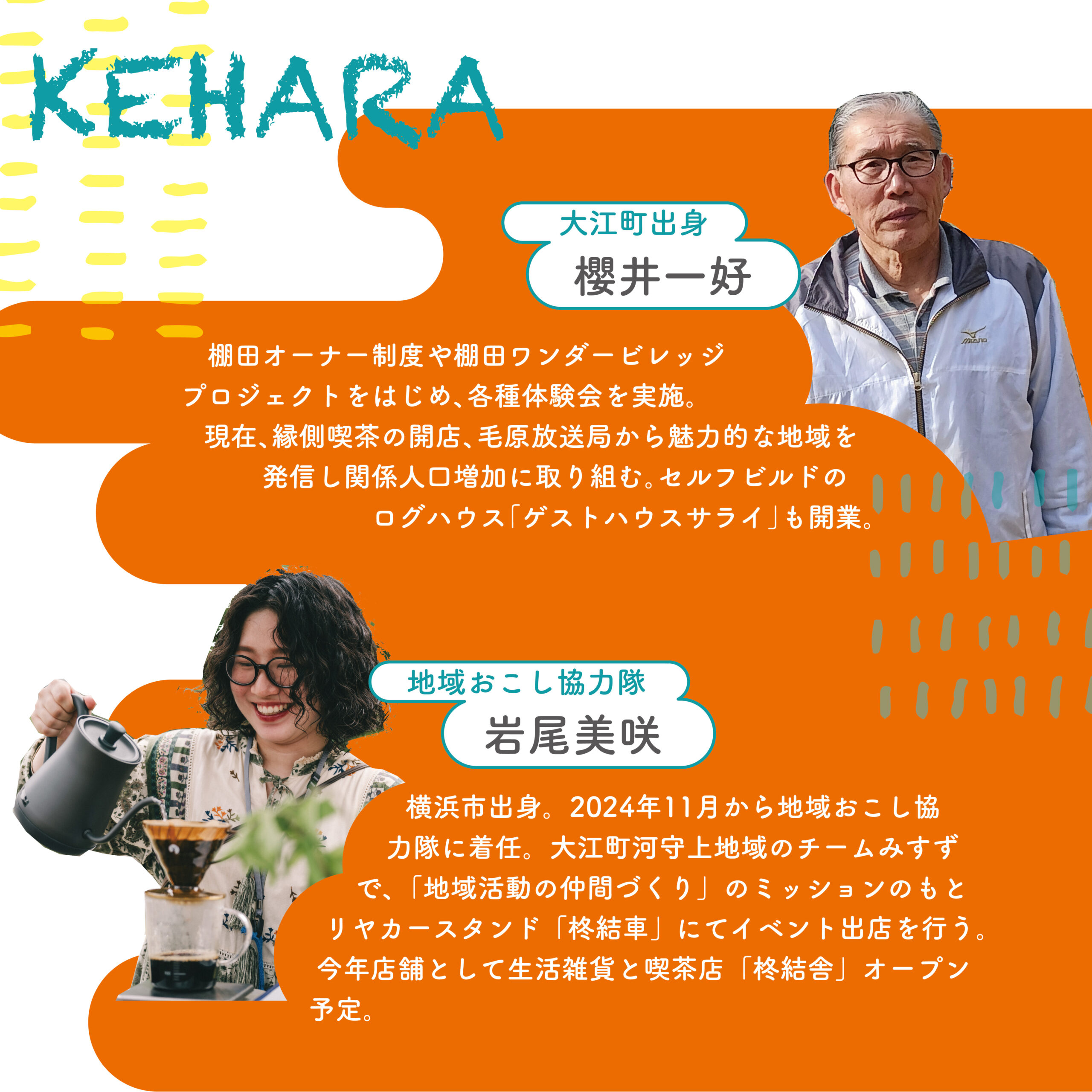 横浜市出身。2024年11月から地域おこし協力隊に着任。大江町河守上地域のチームみすずで、「地域活動の仲間づくり」のミッションのもとリヤカースタンド「柊結車」にてイベント出店を行う。